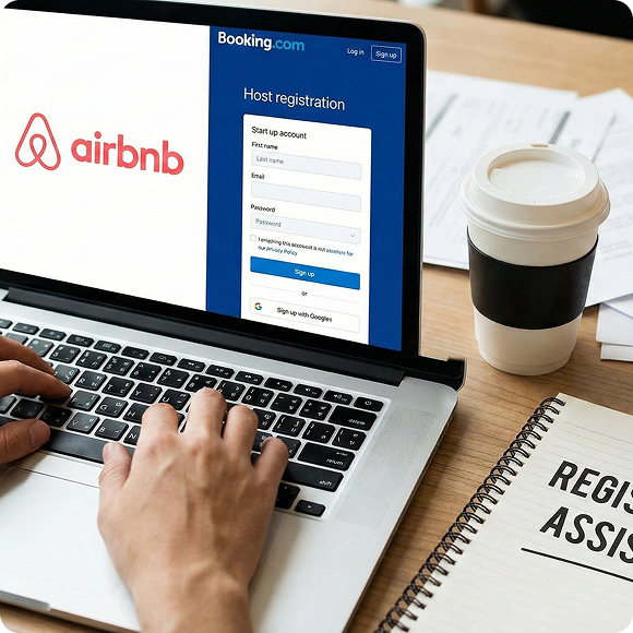 We register your accommodation on booking platforms. If your accommodation is not yet registered on Airbnb or Booking.com, or you want it set up correctly from the start, we can do it for you.